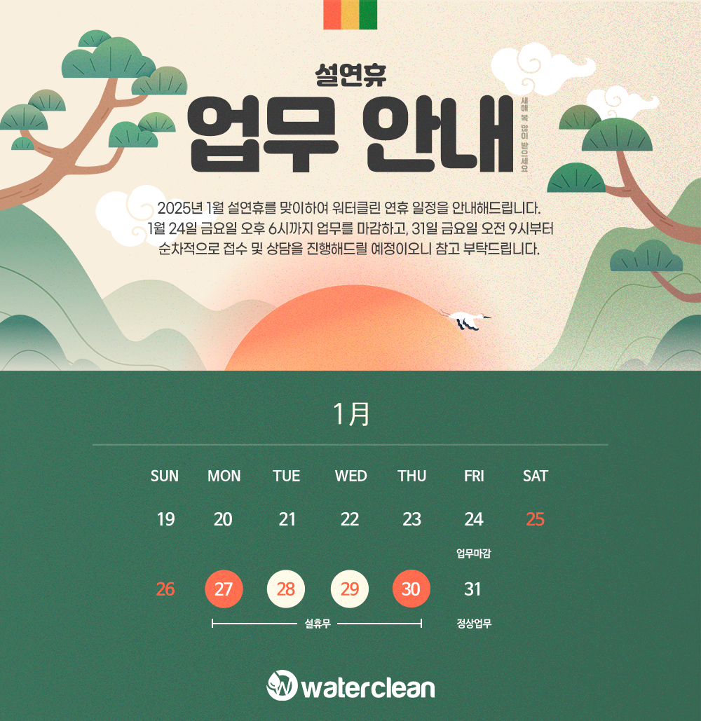 워터클린 연휴 업무 일정을 안내 드립니다.